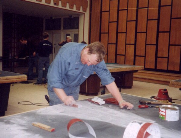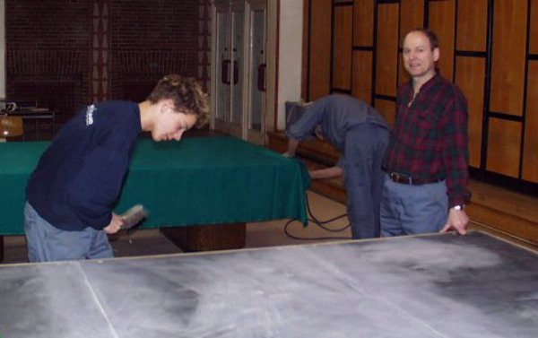 wir Vater und Sohn Sogaard bei der Endkontrolle der Platten vorm