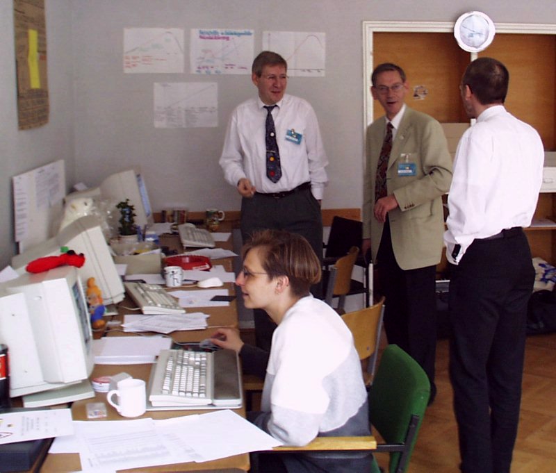oben die anderen Computer-Bediener : Kai Brzezinski, Bettina Kriegel und