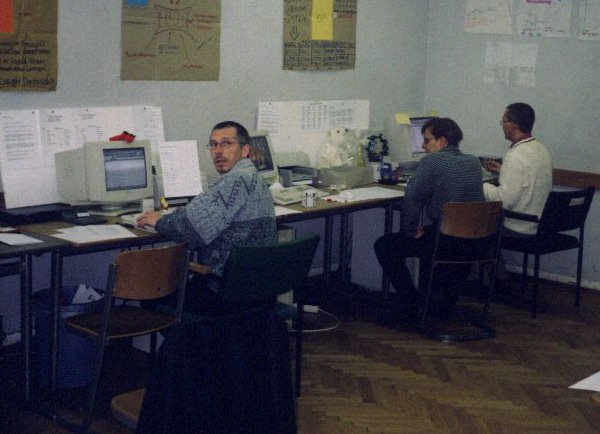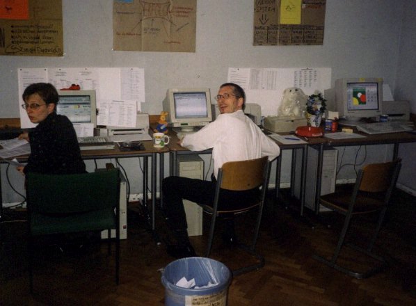 oben die anderen Computer-Bediener : Kai Brzezinski, Bettina Kriegel und